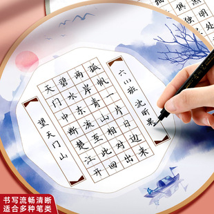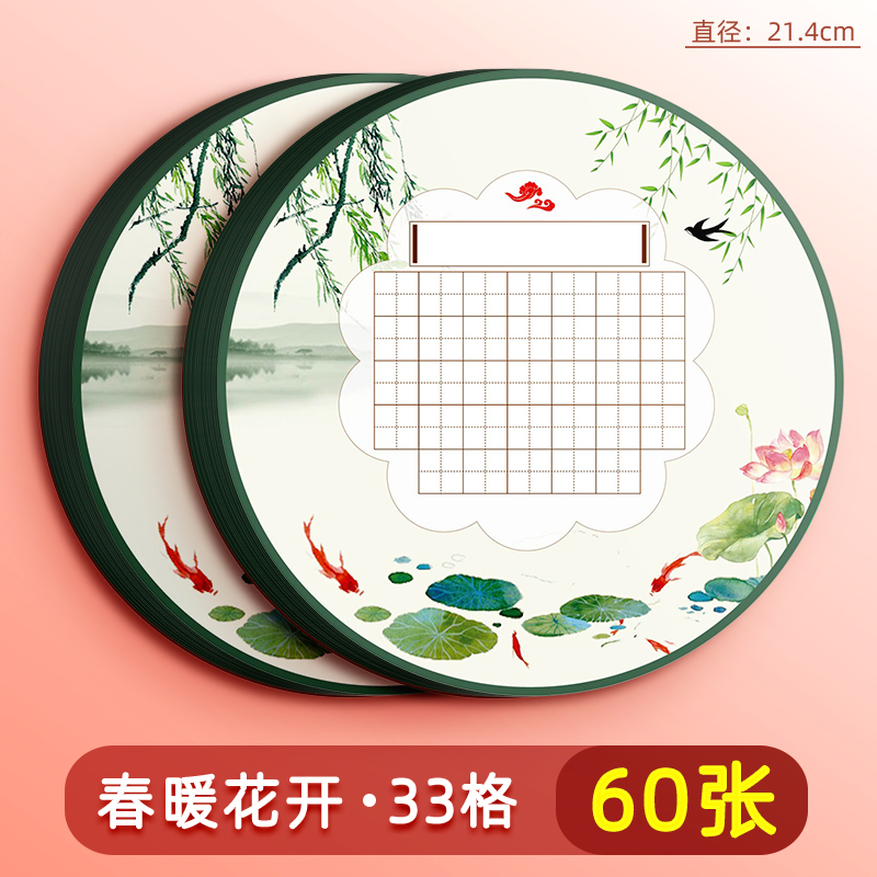 硬笔书法作品纸书法纸圆形田字格钢笔比赛专用纸练习用纸小学生练字本古诗词展示纸一年级中国风加厚书写绝句