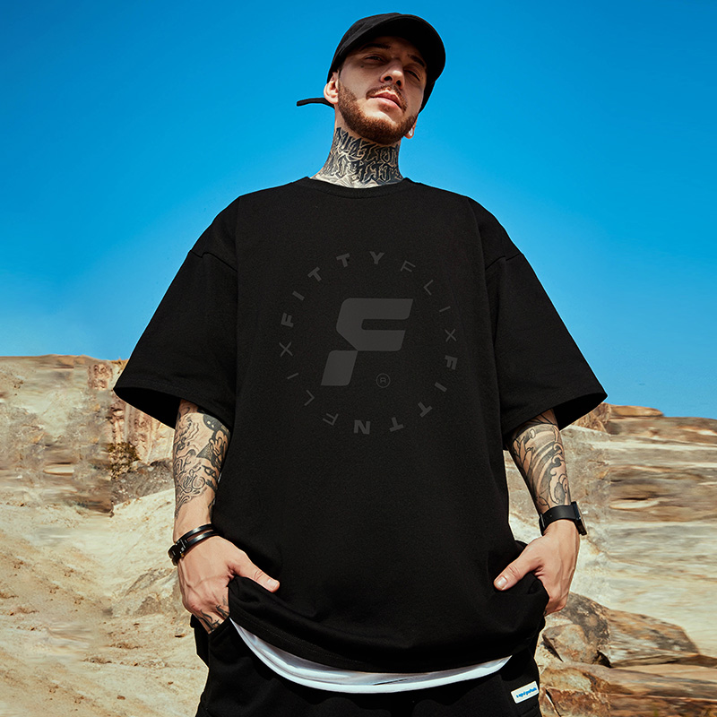 半袖 男hiphop潮流街头300g重磅纯棉T恤大码 复古字母涂鸦短袖 美式