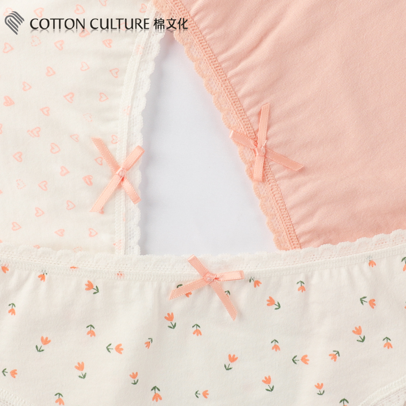 新款 棉文化女士全棉内裤 夏季 纯棉抗菌可爱透气低腰三角裤 女内裤