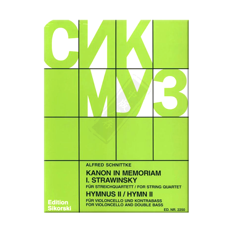 for 第二圣歌 思考斯基乐谱书 施尼德科 string 大提琴和低音提琴 Hymn 弦乐四重奏 SIK2250 总分谱 quartet Stravinsky