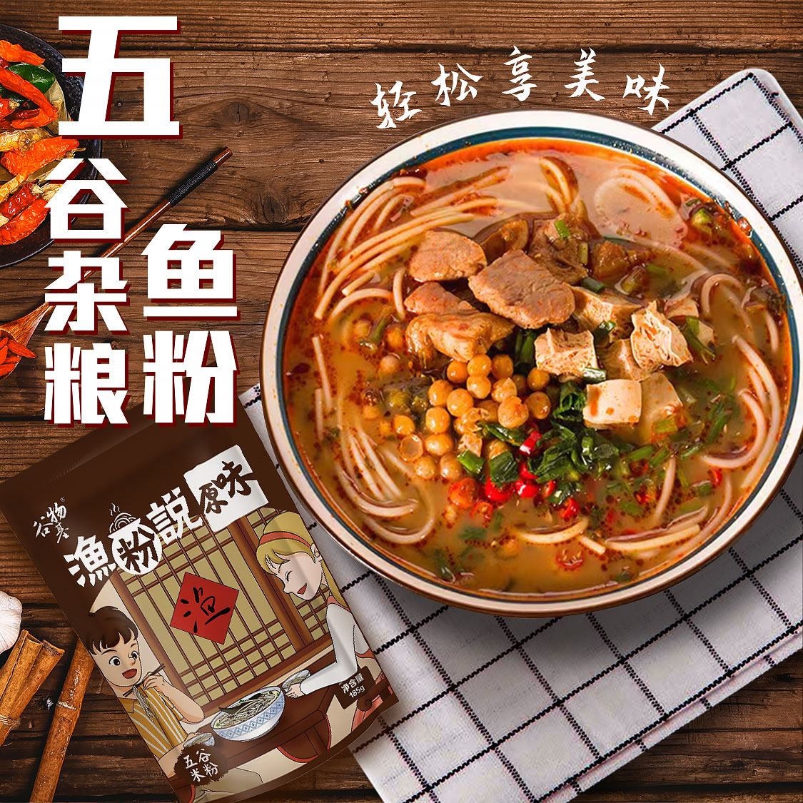 谷物基五谷杂粮鱼粉宿舍方便速食渔粉米粉米线粉丝夜宵食品酸辣味