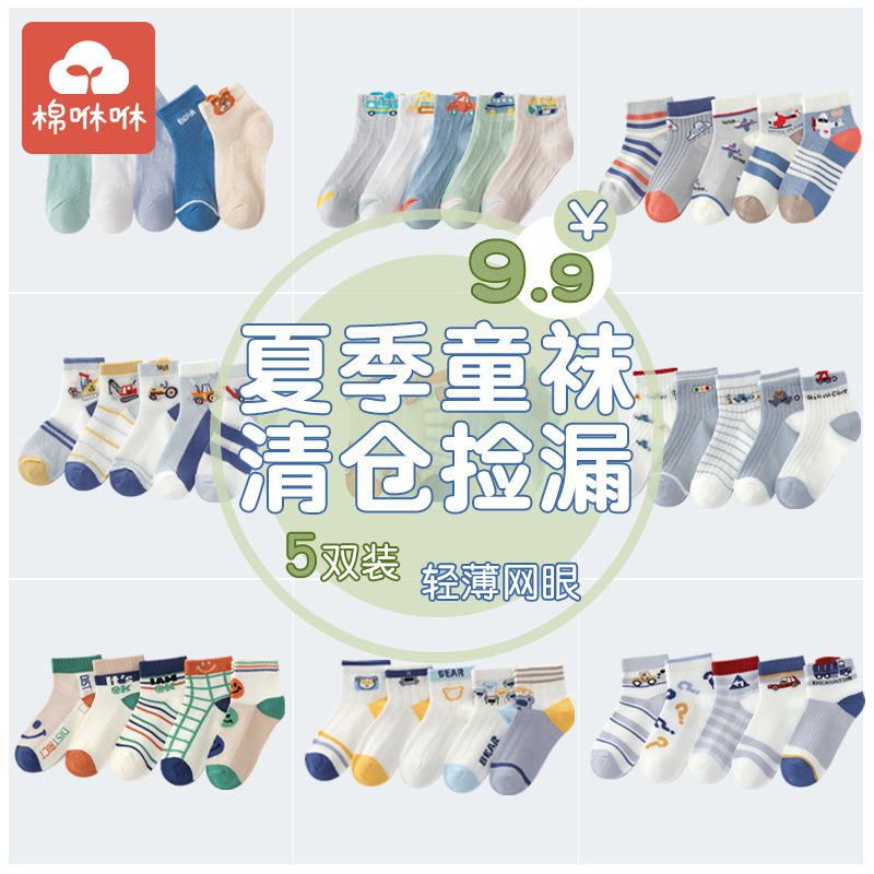 纯棉网眼袜儿童超薄短筒棉袜夏 薄款 棉咻咻福利清仓款 男童女童夏季