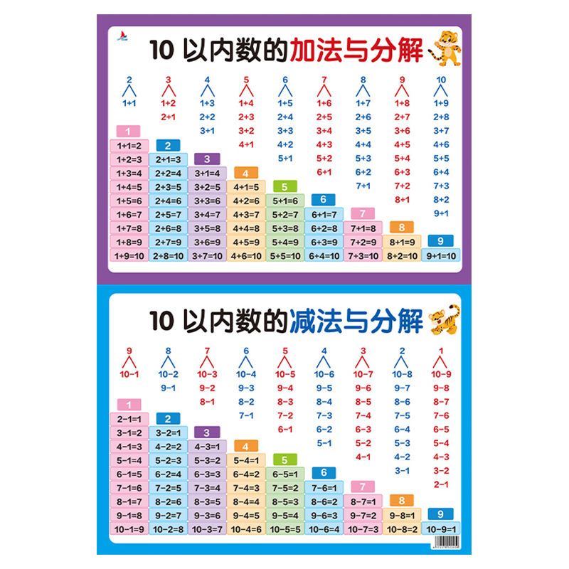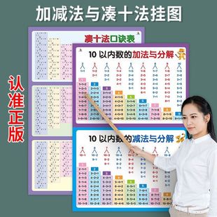 小学生学习挂图儿童识字认识拼音九九乘除法加减法口诀表全套墙贴一年级二年级10以内加减法数学分解与组成口算题卡天天练专项训练