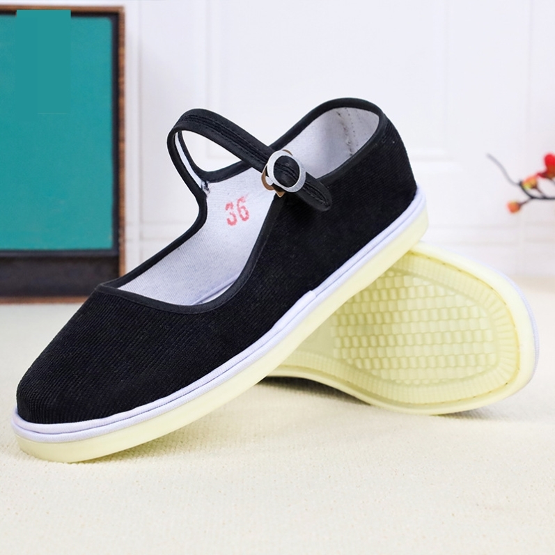 舒适软底透气一字带单鞋 古风汉服鞋 子女圆头平底浅口民族风绣花鞋