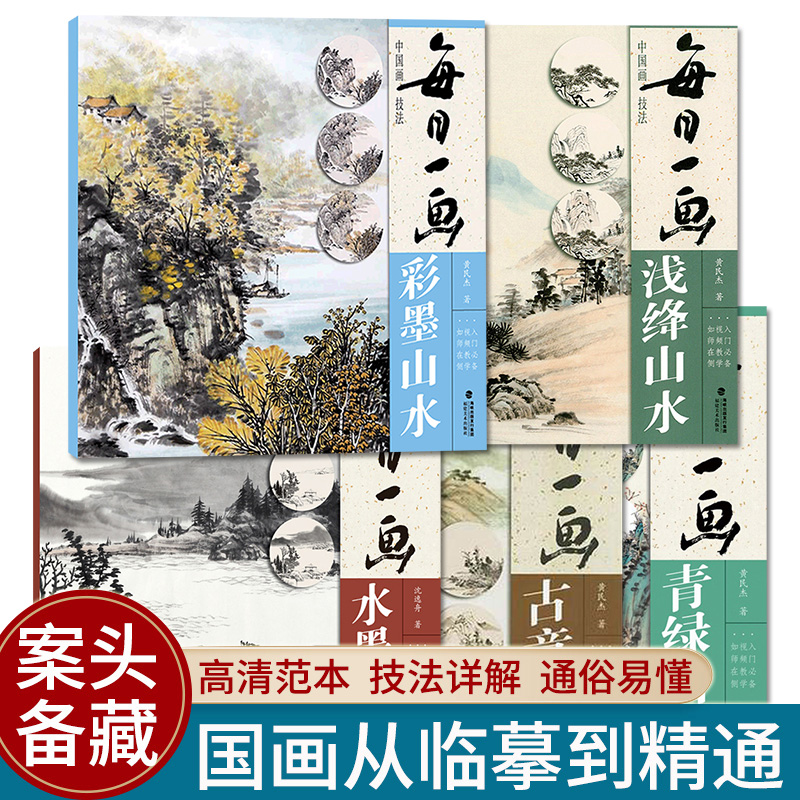 古意山水 青绿山水 浅绛山水 水墨山水 中国名家山水画技法教材国画初学者入门临摹画册教程书 视频教学 彩墨山水 每日一画全套5册