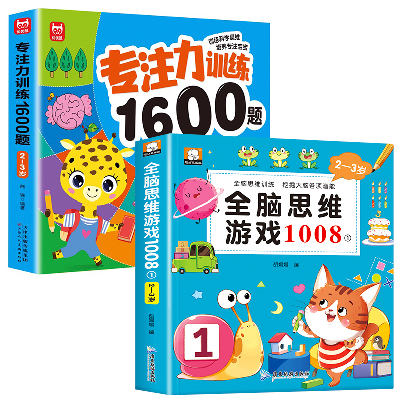 3岁专注力训练1600题幼儿园宝宝早教启蒙思维逻辑迷宫注意力找不同训练书练习书儿童益智奥数启蒙全脑开发绘本游戏书