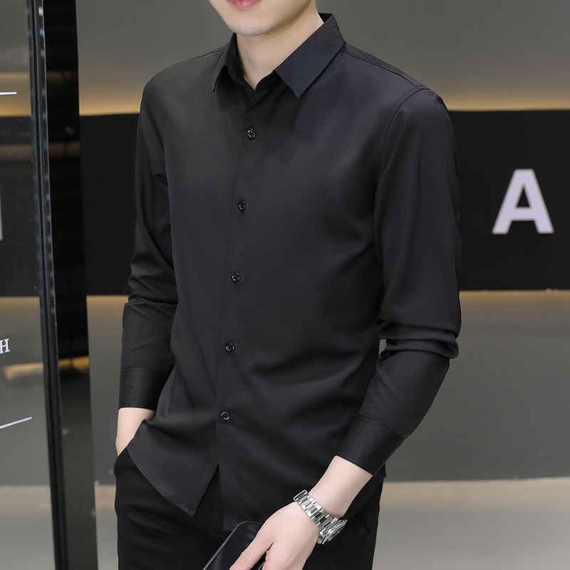 男士 净色版 夏季 纯色商务职业正装 弹力抗皱衬衣高级感 长袖 冰丝衬衫