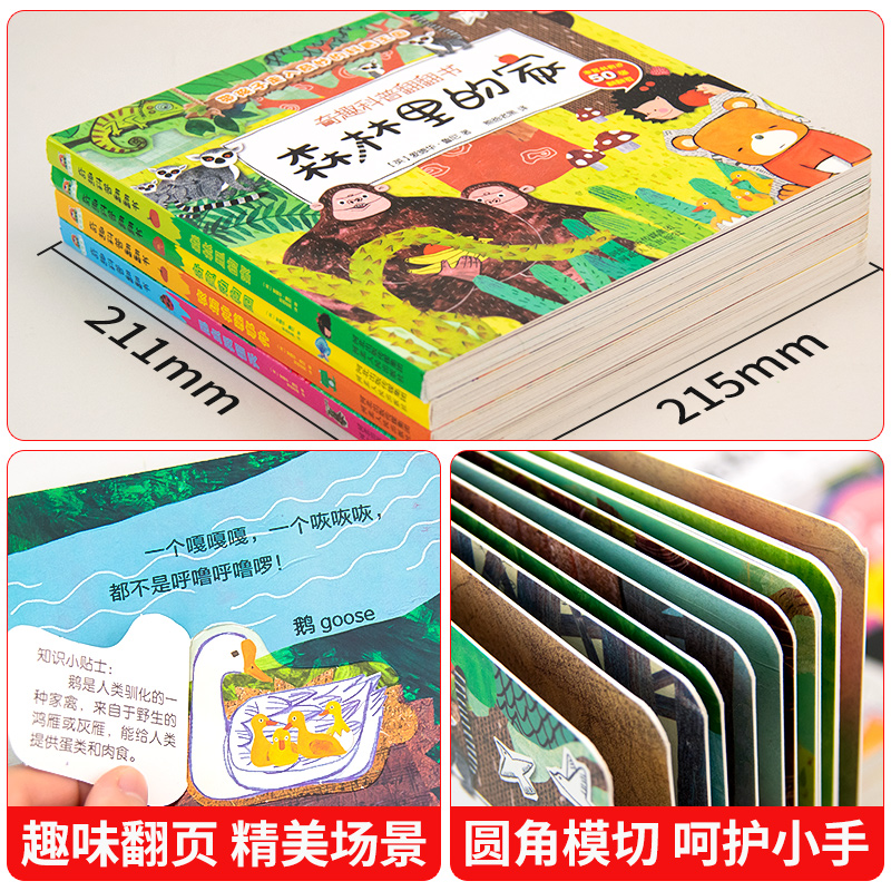8岁宝宝启蒙早教益智书籍机关书 家昆虫哭翻天0 奇趣科普翻翻书全4册儿童3d立体书揭秘系列奇趣动物园农场神秘事件森林里