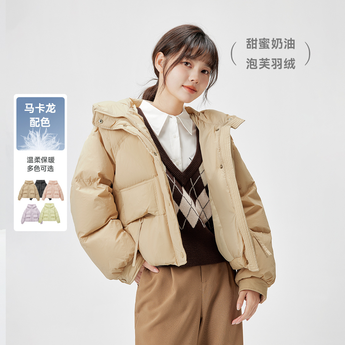 外套 连帽截短休闲小个子韩版 雪中飞2025秋冬紫色羽绒服女式 短款