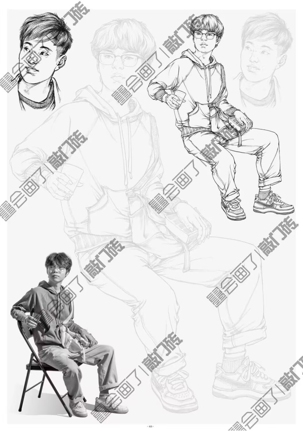 2023王靖宇速写描摹本局部动态完整篇敲门砖零基础入门人物速写站坐蹲三姿人物速写临摹描摹本