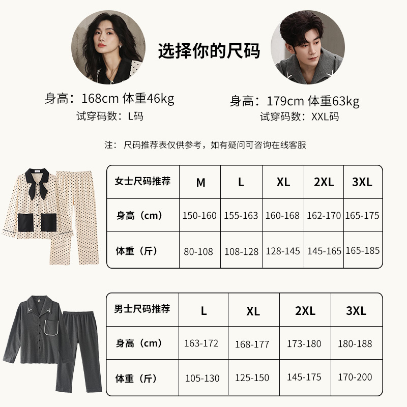 休闲大码 纯棉薄款 男士 家居服夏季 女士两件套 睡衣女春秋款 新款 长袖