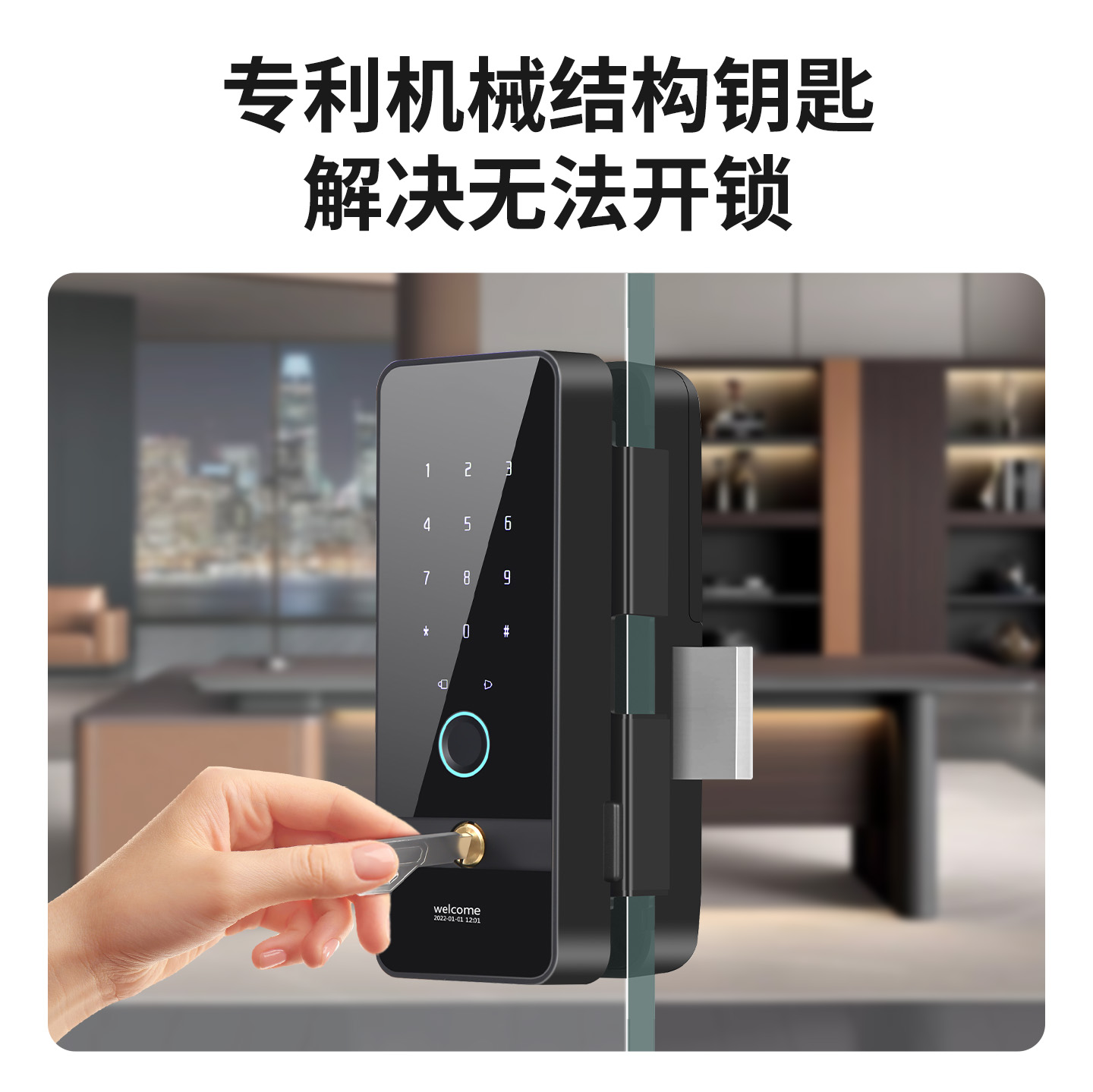 科密办公室玻璃门锁机械钥匙指纹密码 锁双开单开公司商铺智能门锁