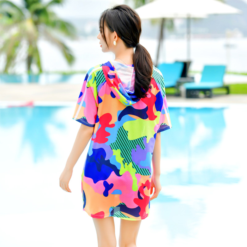 分体三件套 温泉保守裙式 大码 泳衣女性感大胸胖mm高腰遮肚显瘦罩衫