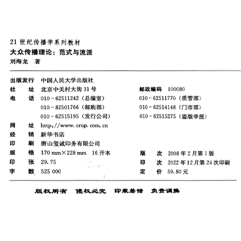 与流派 中国人民大学出版 刘海龙 新闻与传播专业考研教材辅导 社传媒学系列教材教辅 传播学系列教材传播学理论 大众传播理论范式