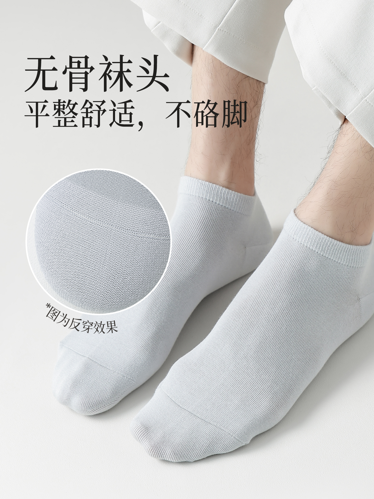 黑色男士 纯棉无骨抗菌吸汗短筒全棉夏季 船袜 薄款 袜子男短袜春秋季