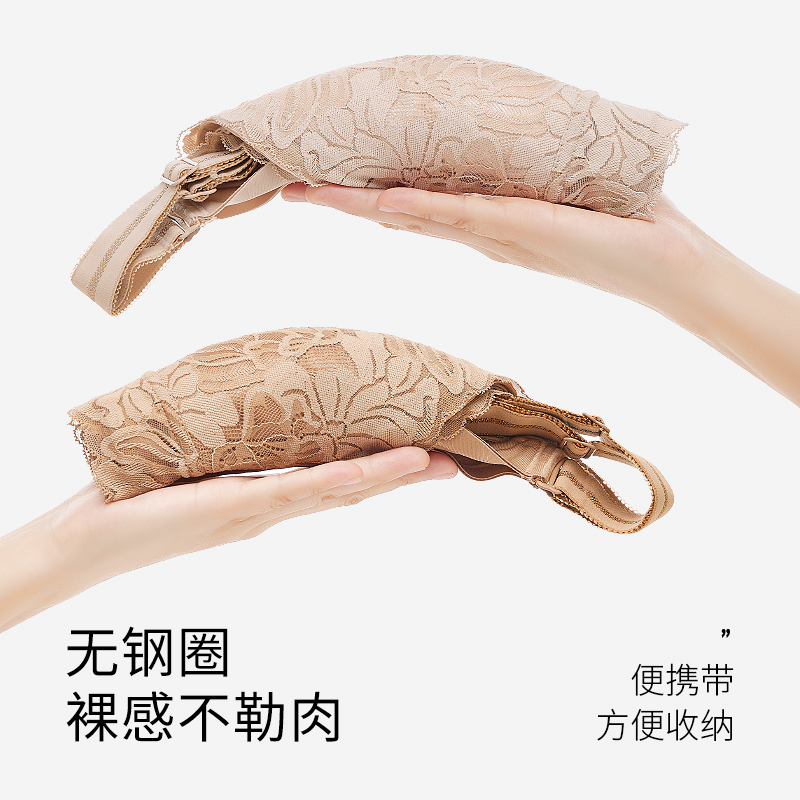 幸棉美背文胸无痕露背聚拢大u型挂脖吊带隐形粉底液细肩带内衣女