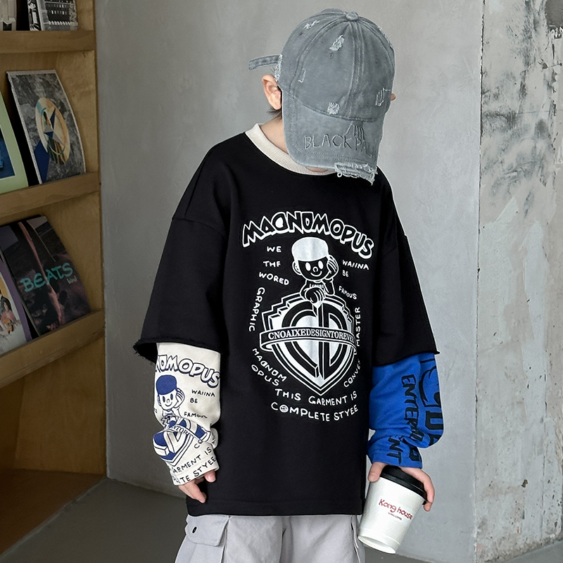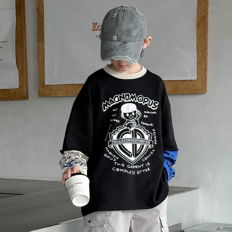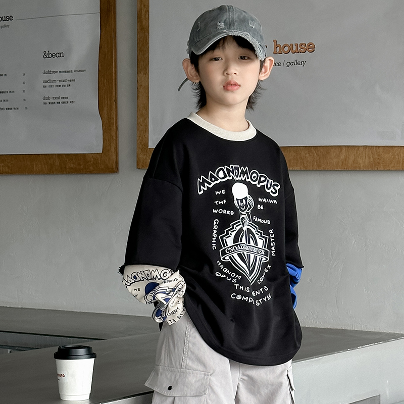 打底衫 男童长袖 儿童春季 2025新款 中大童男孩休闲衣服潮T t恤春秋款