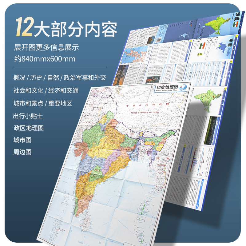 印度地图0.85 正版 0.6米世界分国地理图折叠套封 社 书籍 星球地图出版 当当网