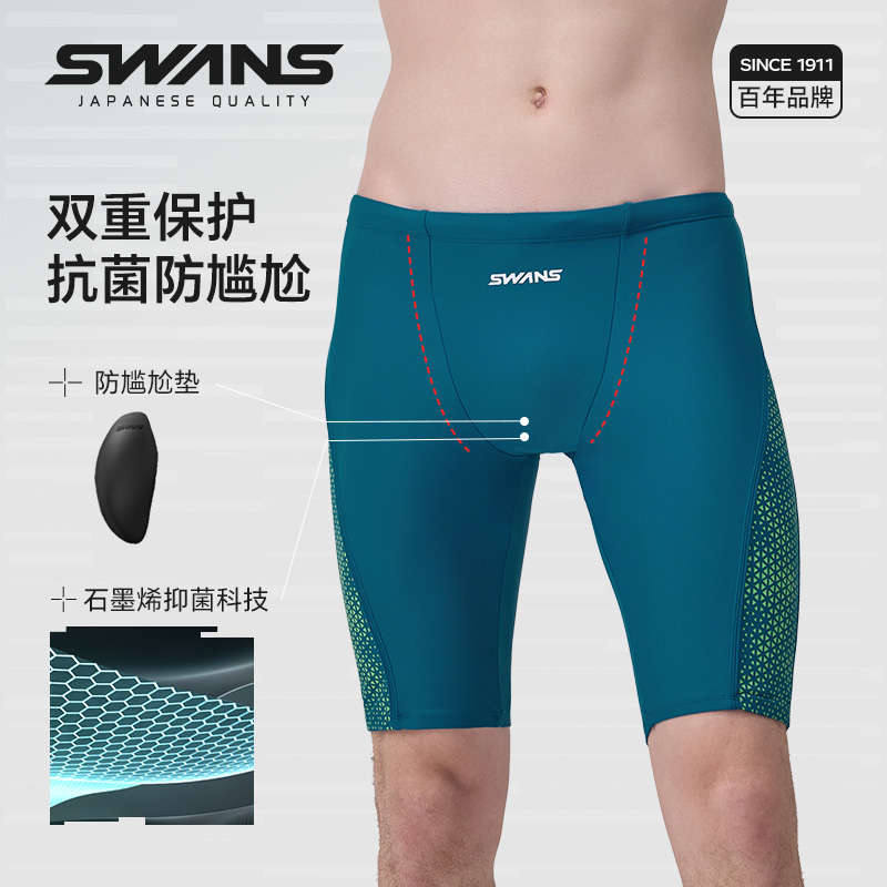 游泳装 防尴尬速干抗氯成人五分竞速专业训练新款 备 男士 swans泳裤