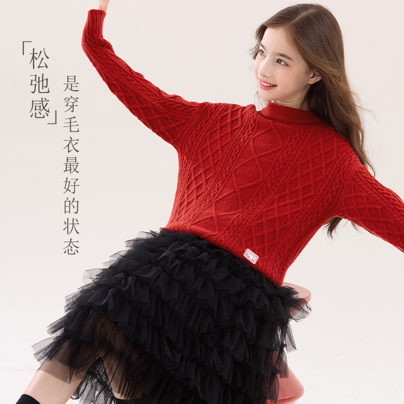 可爱上衣 宽松2025新款 森马针织开衫 女冬半高领小狗提花牛角扣毛衫