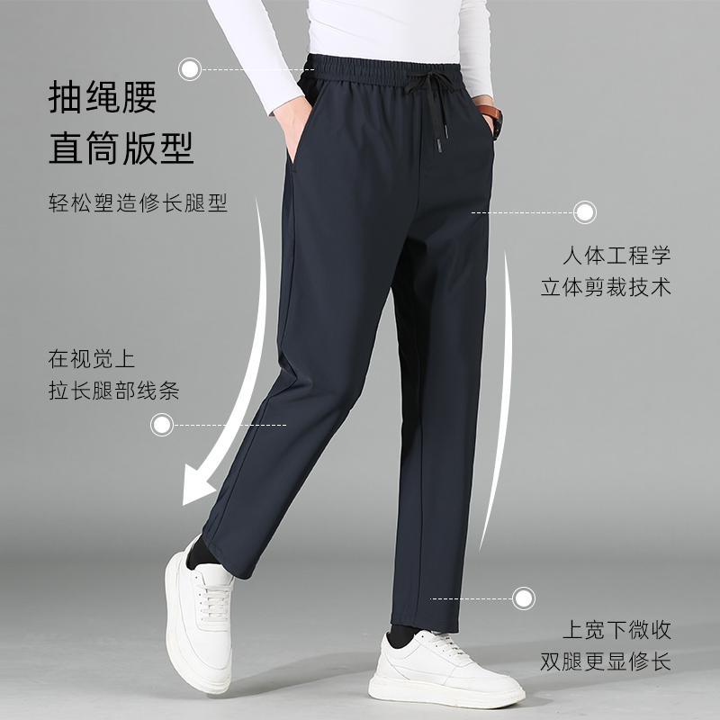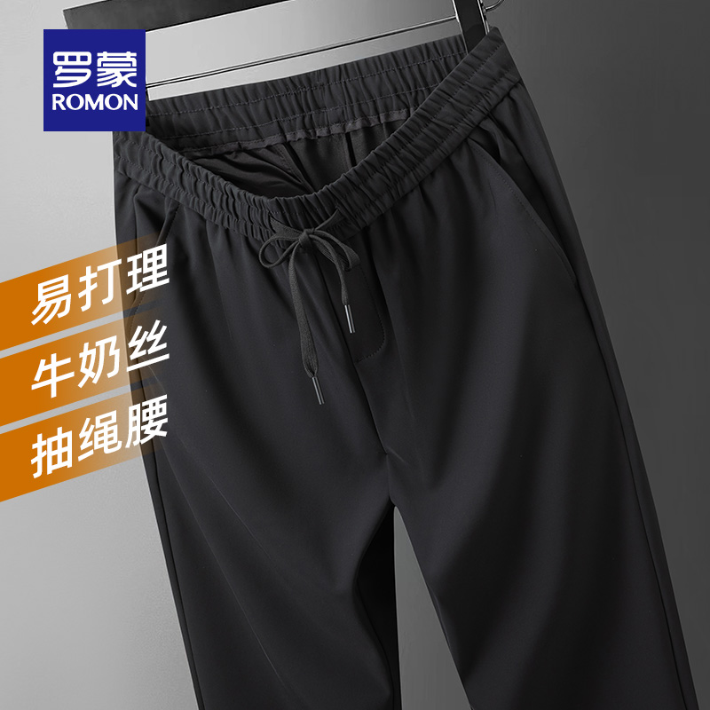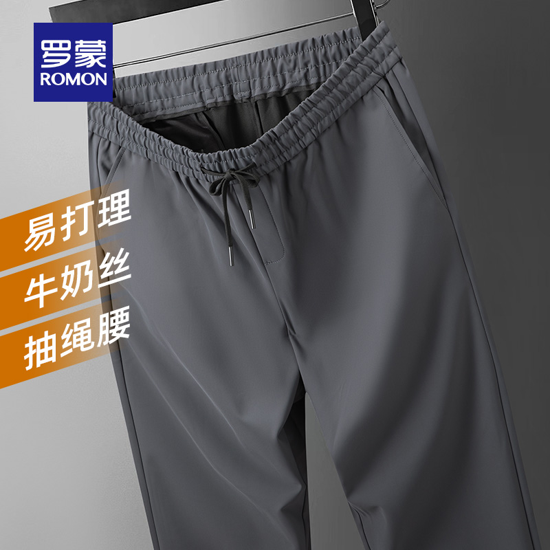 四面弹牛奶丝 新款 罗蒙男士 2025秋季 直筒裤 抽绳松紧腰休闲长裤
