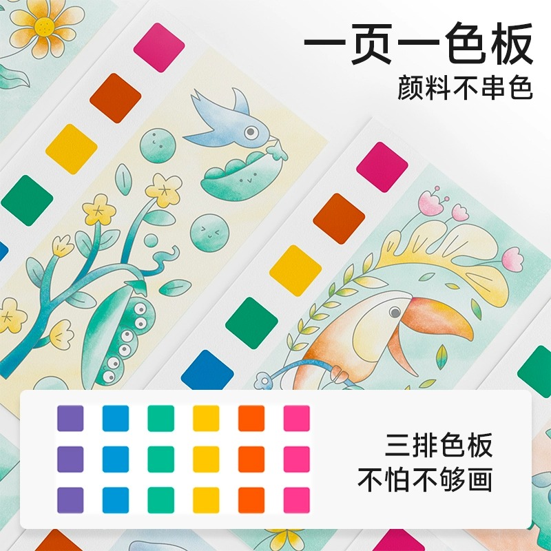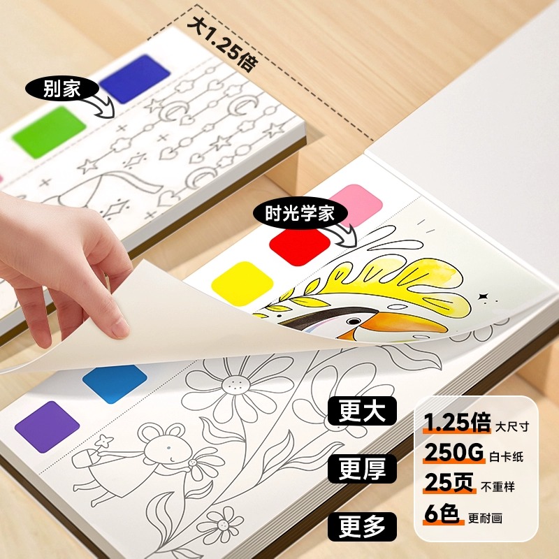 便携水彩涂色本儿童幼儿园涂色绘本便签画画本填色幼儿临摹水粉画