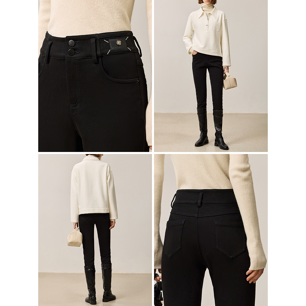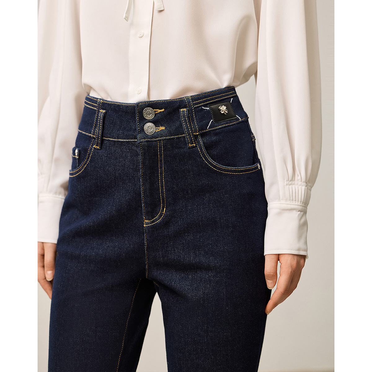 女2025秋季 百家好高腰牛仔裤 新款 印花垂感直筒裤 Basic 长裤 House