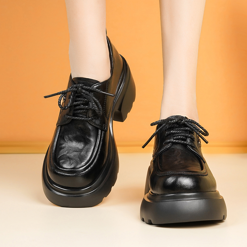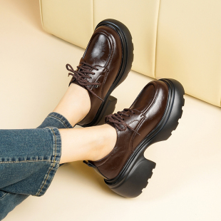 英伦风黑色系带真皮小皮鞋 厚底乐福鞋 子百搭单鞋 春秋鞋 女2025新款