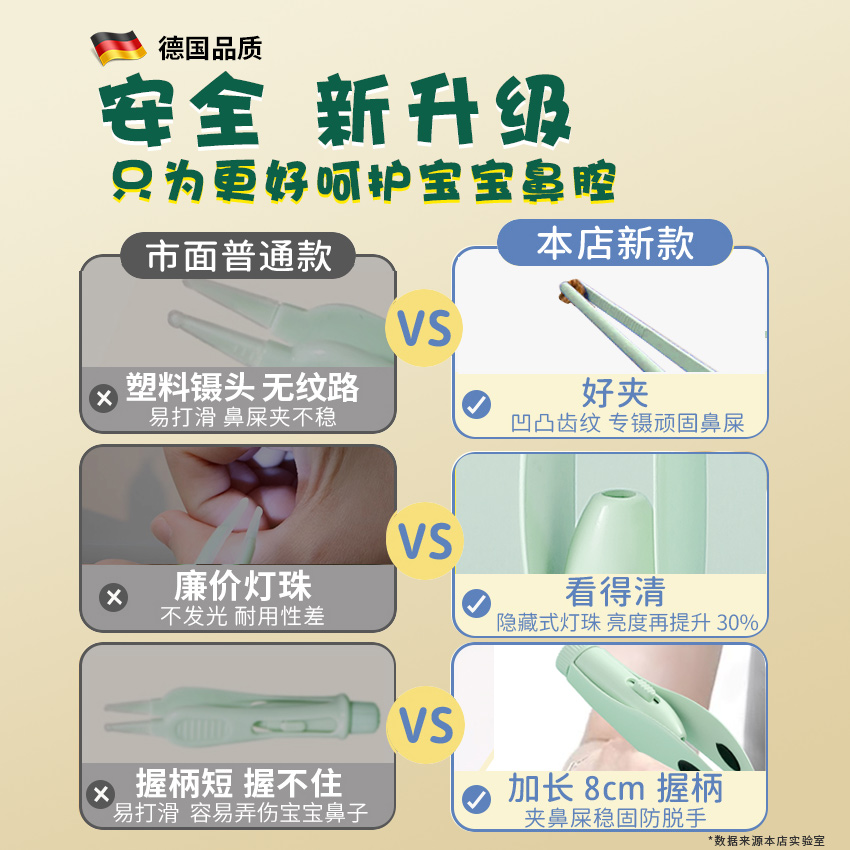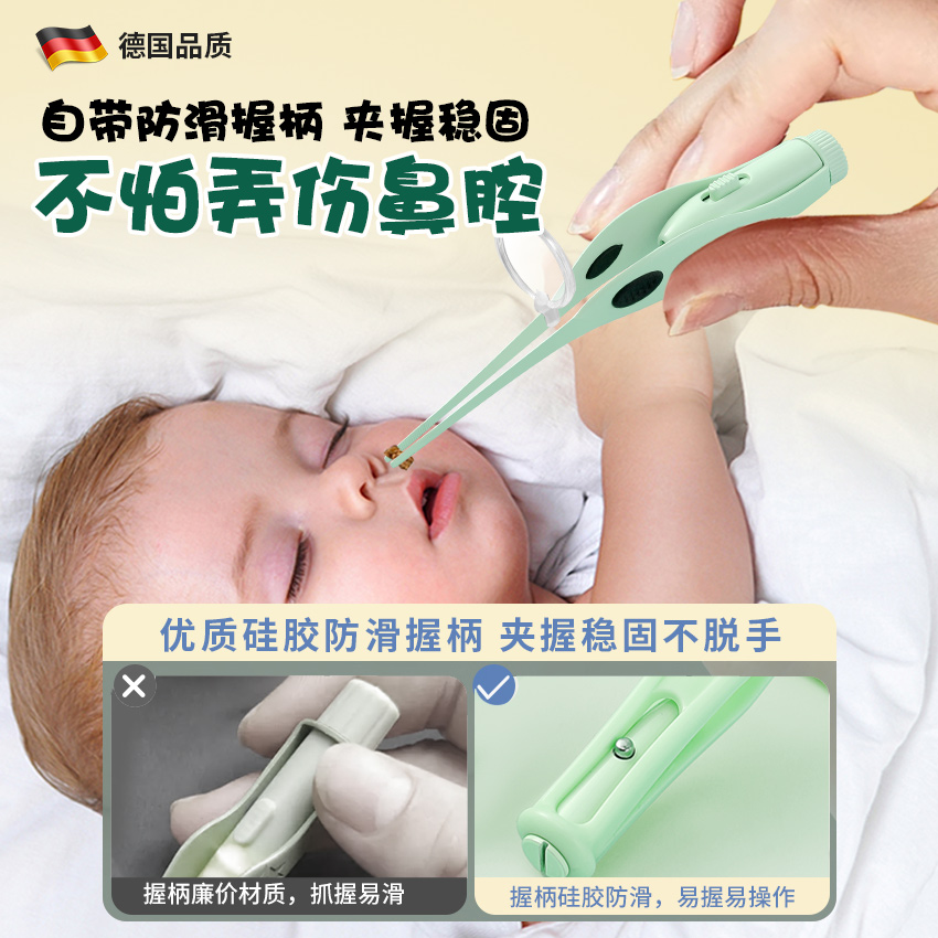 新生婴儿宝宝夹鼻屎小镊子清理神器鼻涕夹儿童发光带灯硅胶鼻屎夹
