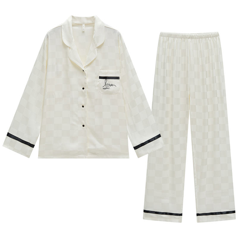 轻奢套装 棋盘格高级感男士 家居服 女冰丝长袖 乐姿梦情侣睡衣春秋季