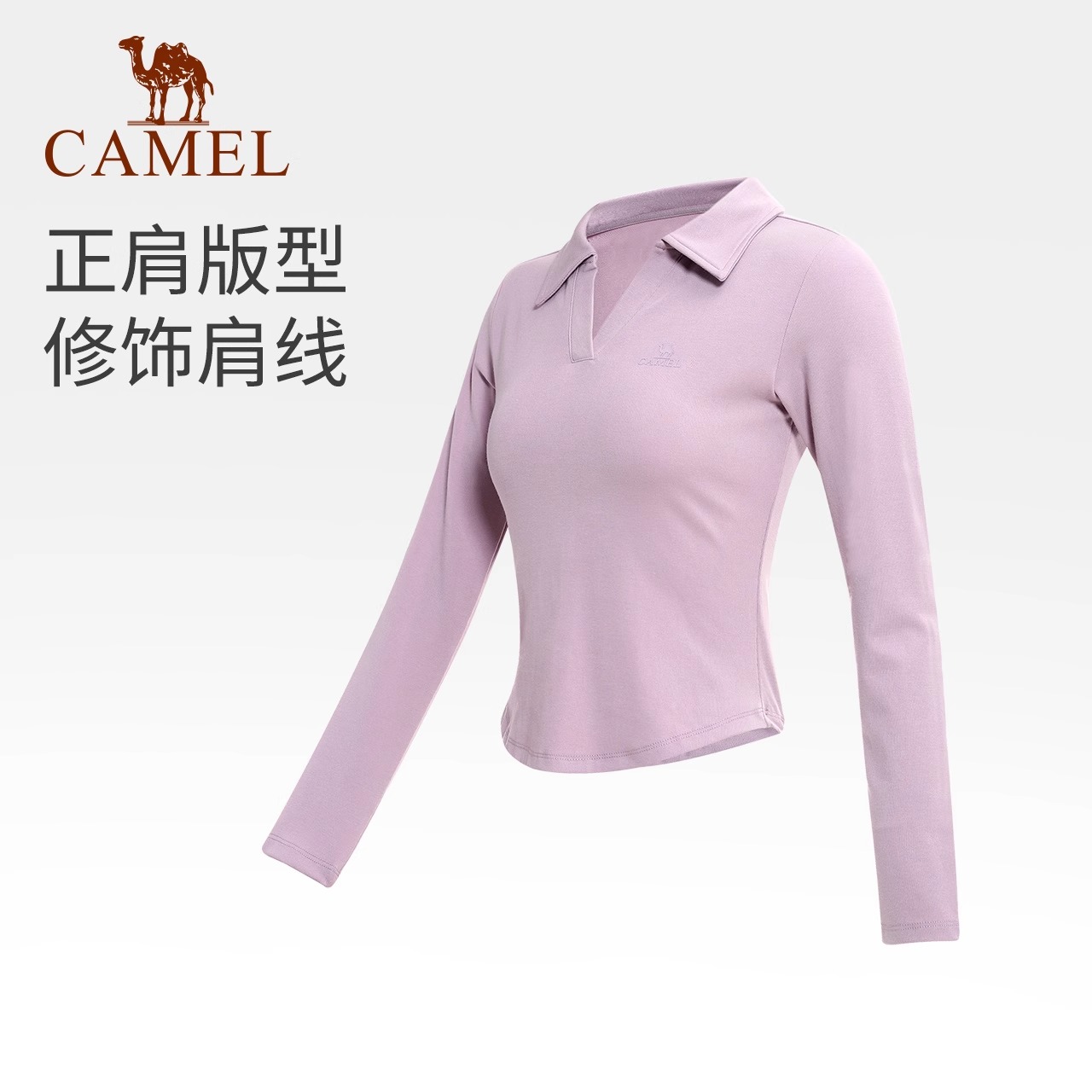 针织长袖 上衣打底衫 T恤2025秋季 显瘦休闲运动短款 新款 骆驼女装