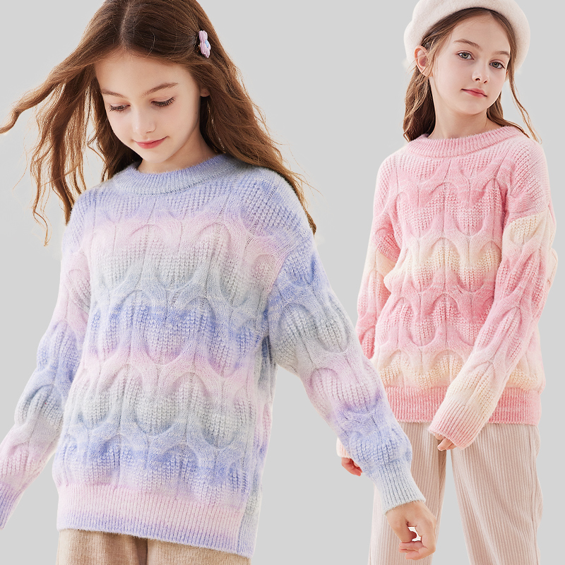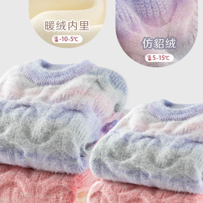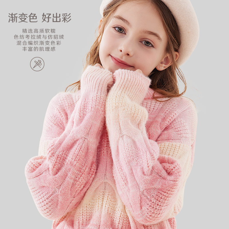 中大童加绒加厚毛线上衣洋气童装 女童毛衣秋冬新款 儿童针织打底衫