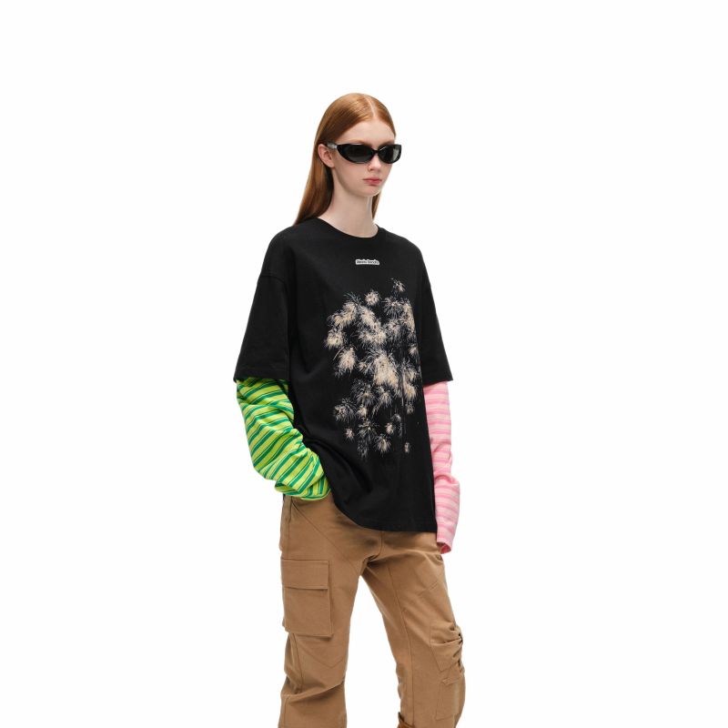 子假两件T恤银泰百货 Alexia 异色条纹袖 男女同款 301261 Sandra