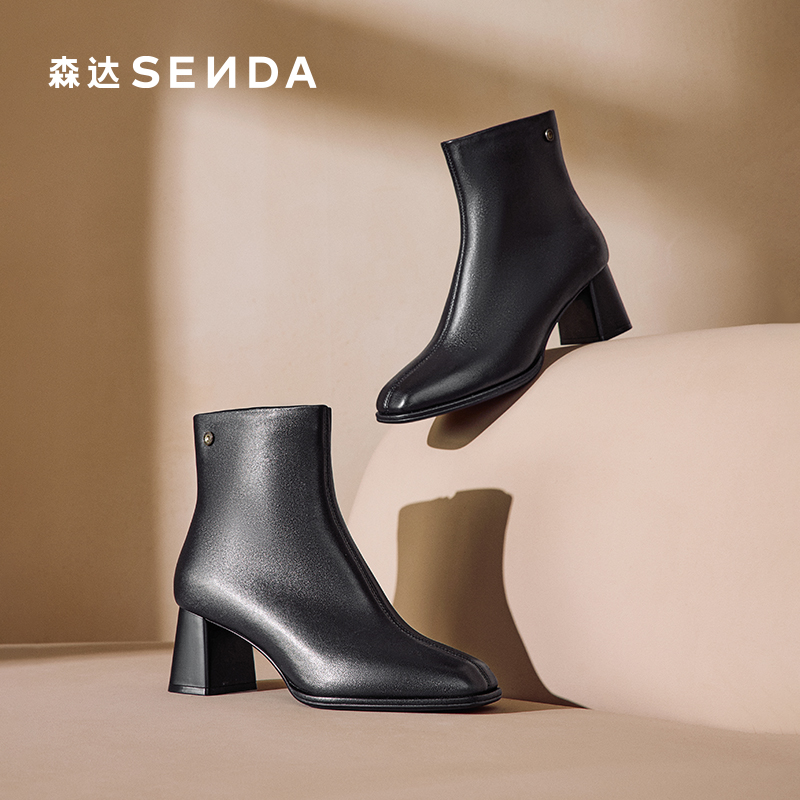 通勤显瘦粗跟增高短靴ZTE54 冬款 森达时装 靴女款