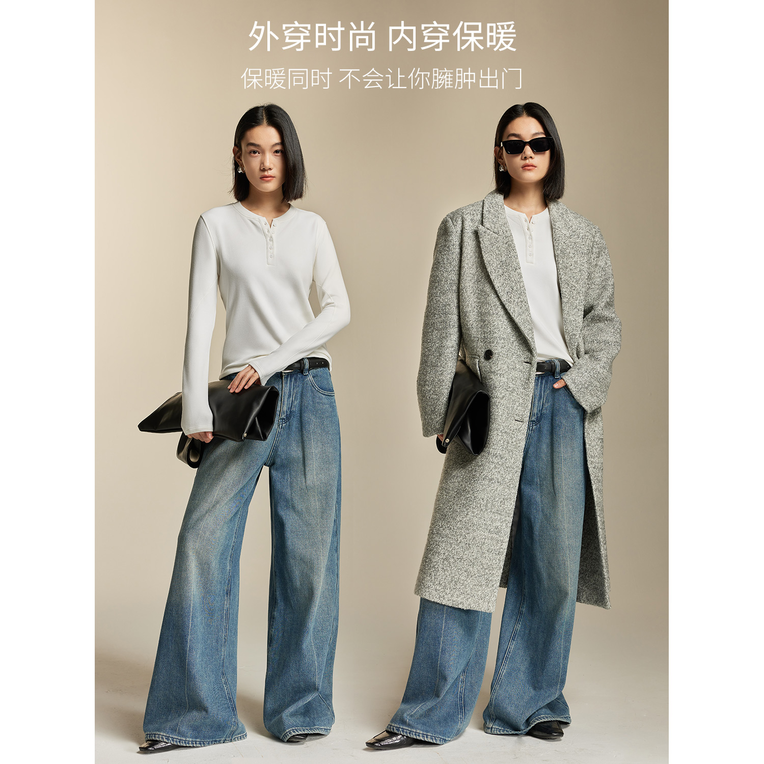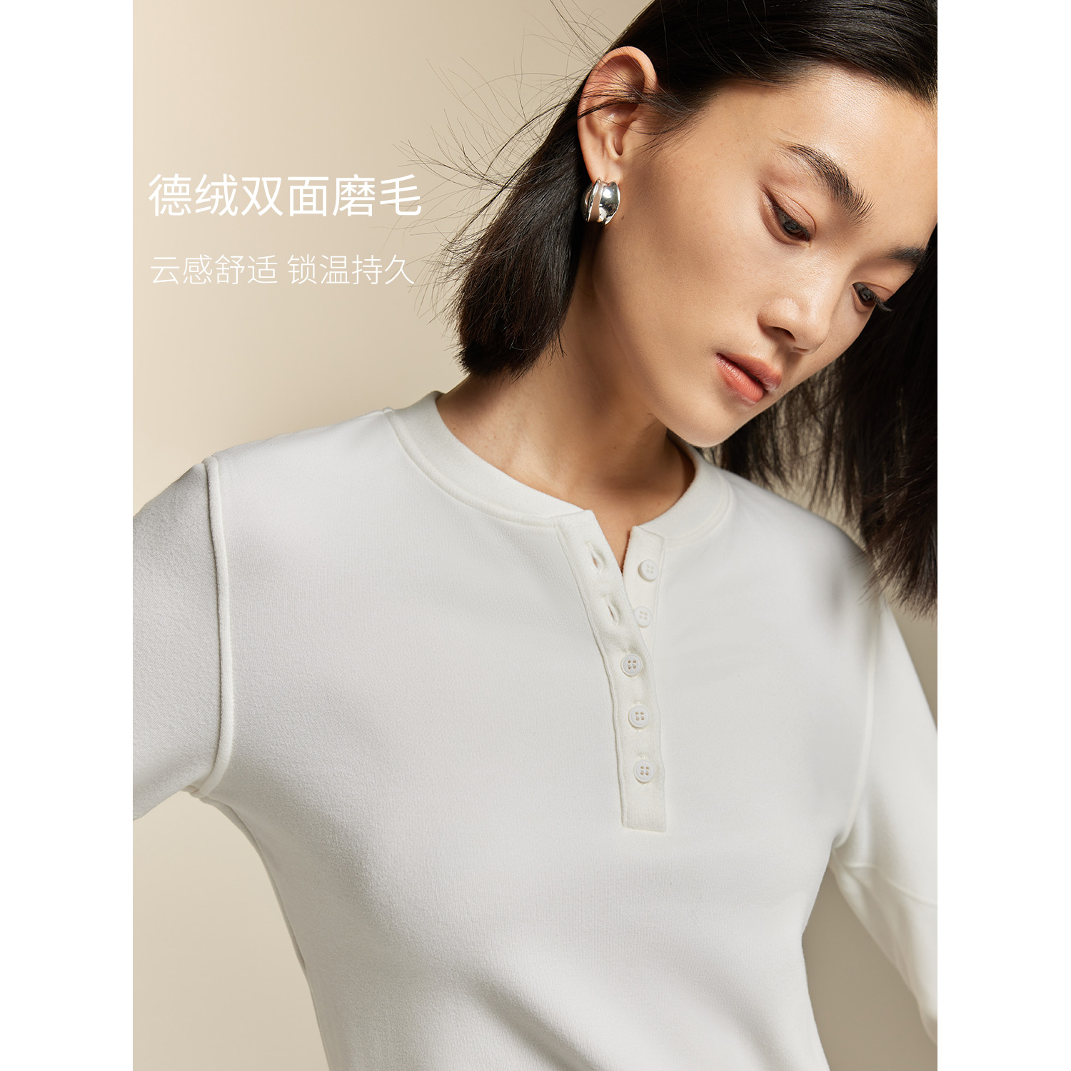 TINGE贴己云朵奶霜保暖亨利衫 秋冬保暖内衣女磨毛德绒打底肌底衣