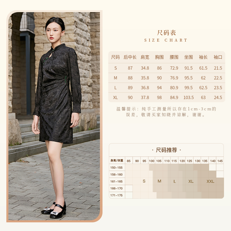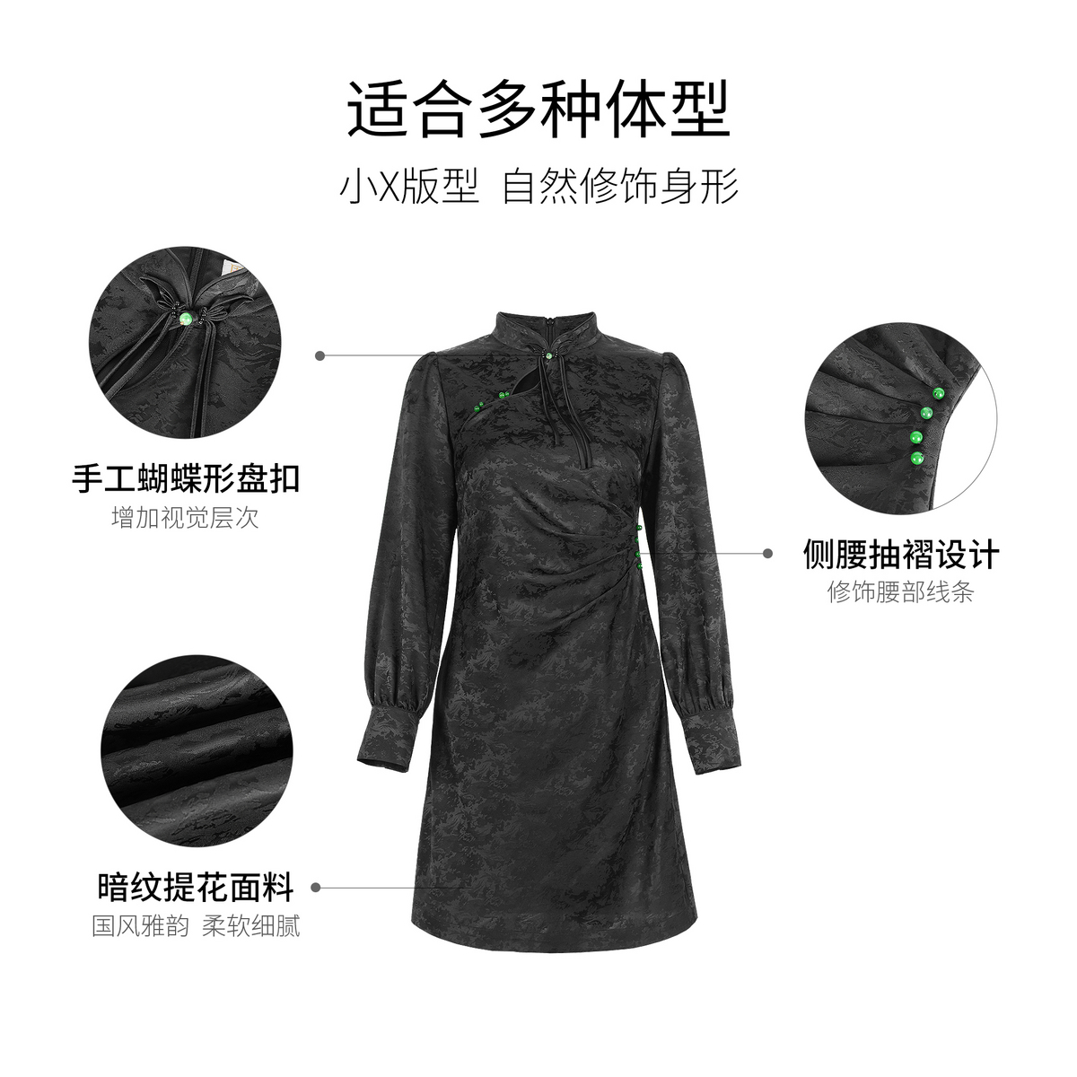 国风立领提花压褶收腰短款 中式 气质旗袍连衣裙 新款 固执秋季