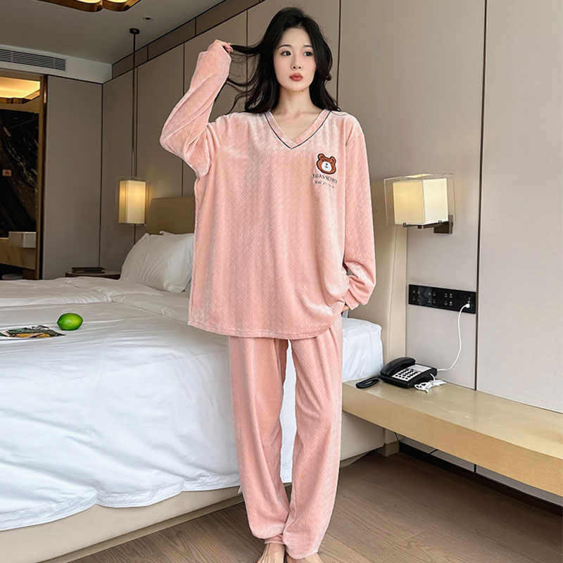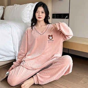 胖妹妹大码 睡衣女胖mm秋冬珊瑚绒薄绒两件套家居服200斤加肥加大