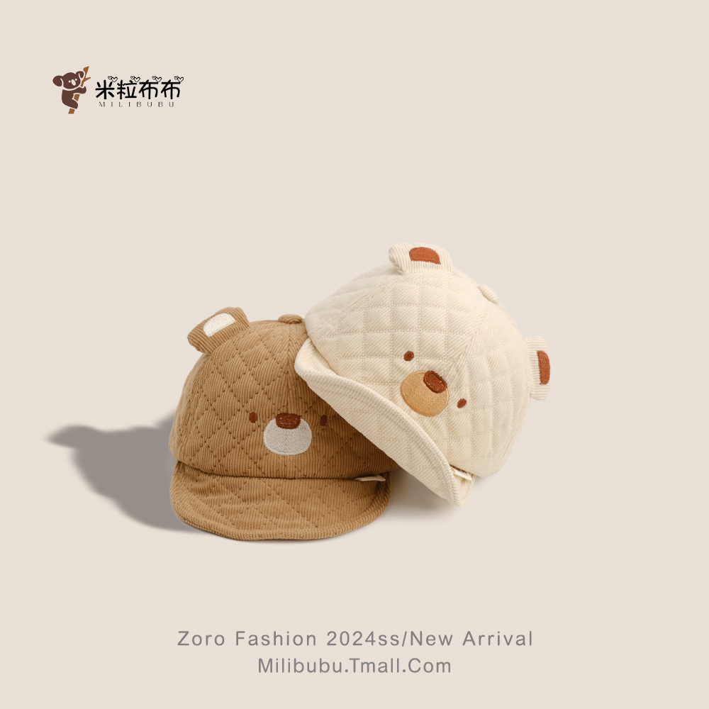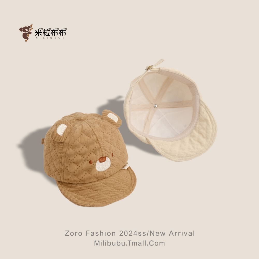 宝宝帽子秋冬款 加厚保暖软檐棒球帽儿童超萌小熊鸭舌帽男宝遮阳帽