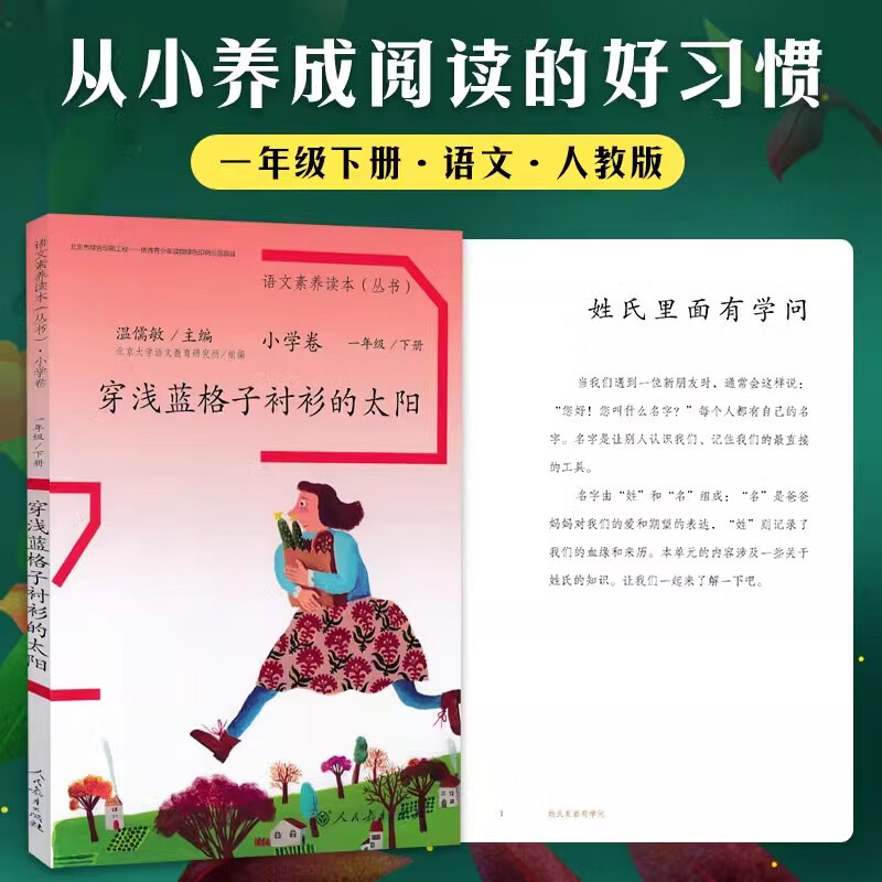 1下小学生语文课外阅读能力提升儿童文学素养读 社正版 穿浅蓝格子衬衫 太阳温儒敏主编一年级下册小学卷语文素养读本人民教育出版