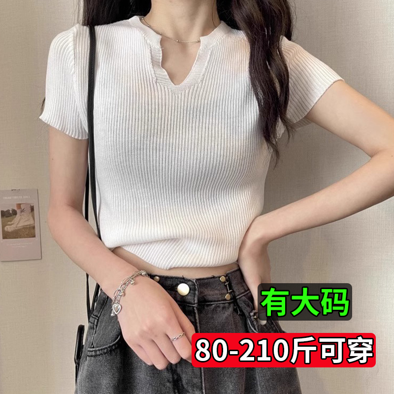 内搭上衣中袖 大码 毛衣女短袖 针织打底衫 t恤胖mm春秋 半高领五分袖