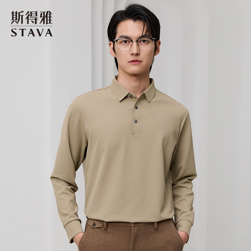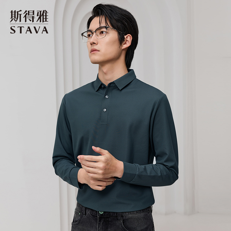 POLO衫 休闲长袖 2025秋季 新款 罗蒙男士 商务纯色休闲百搭T恤衫 时尚