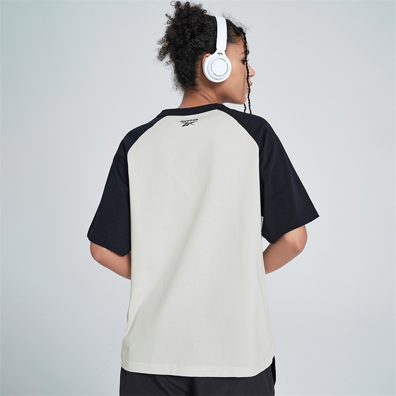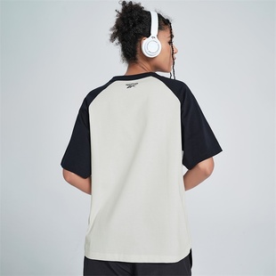 复古插肩袖 Reebok锐步官方24夏季 TEE美式 女款 拼色运动休闲T恤 新款