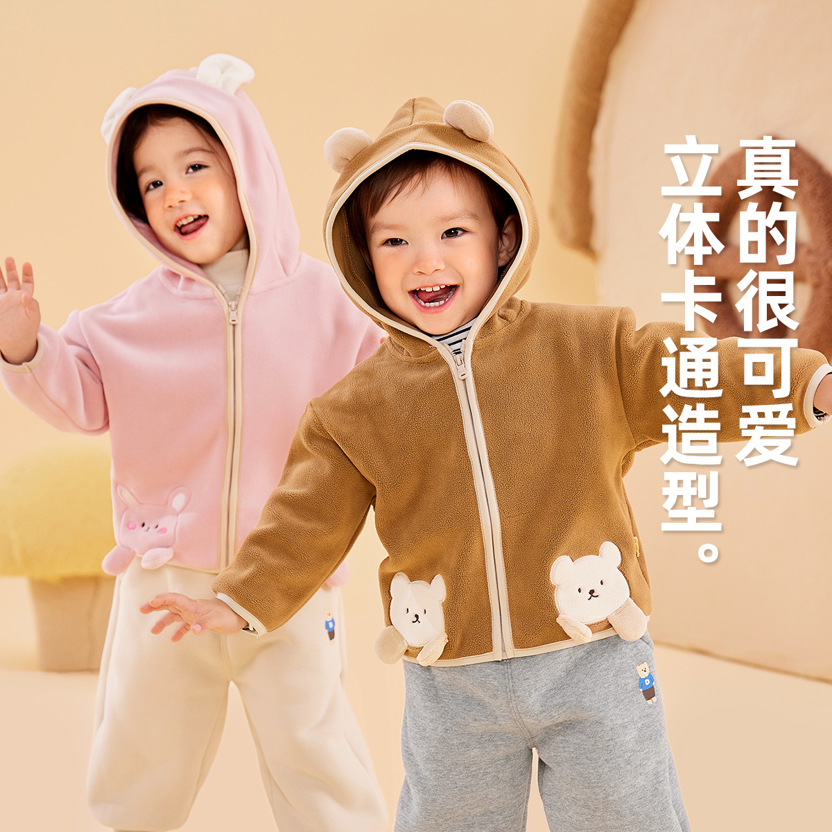 25新款 宝宝夹克男女童上衣普通 儿童外套春秋冬甜美泡芙绒外出开衫