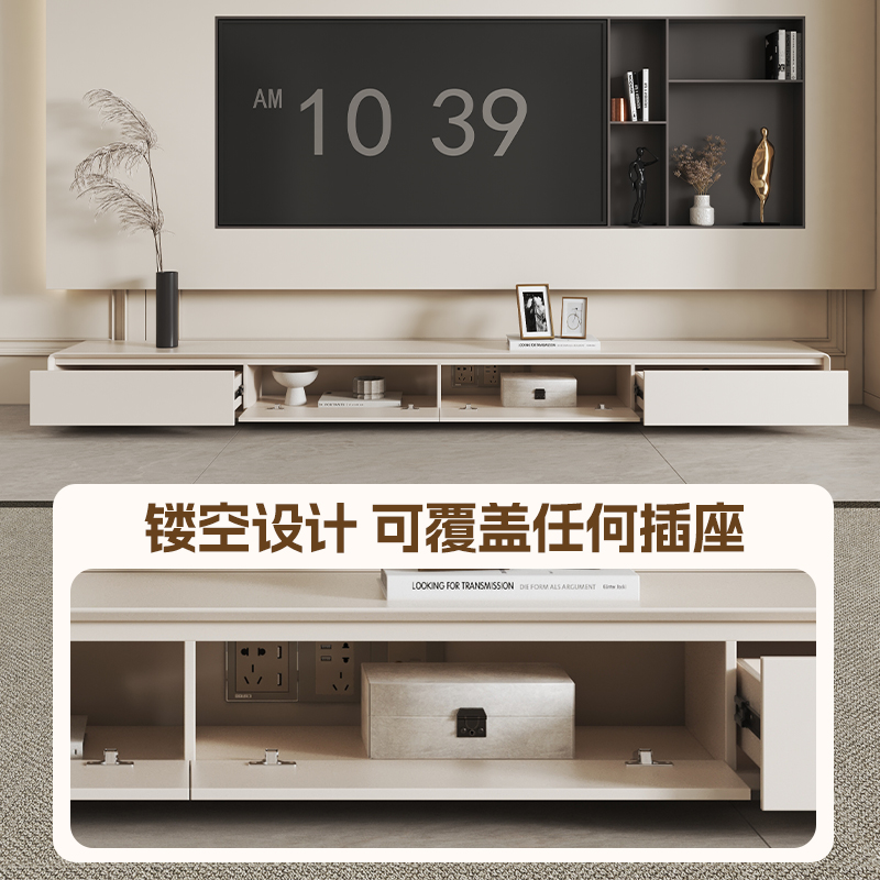 实木岩板伸缩电视机柜茶几组合小户型落地客厅家用收纳储物柜一体