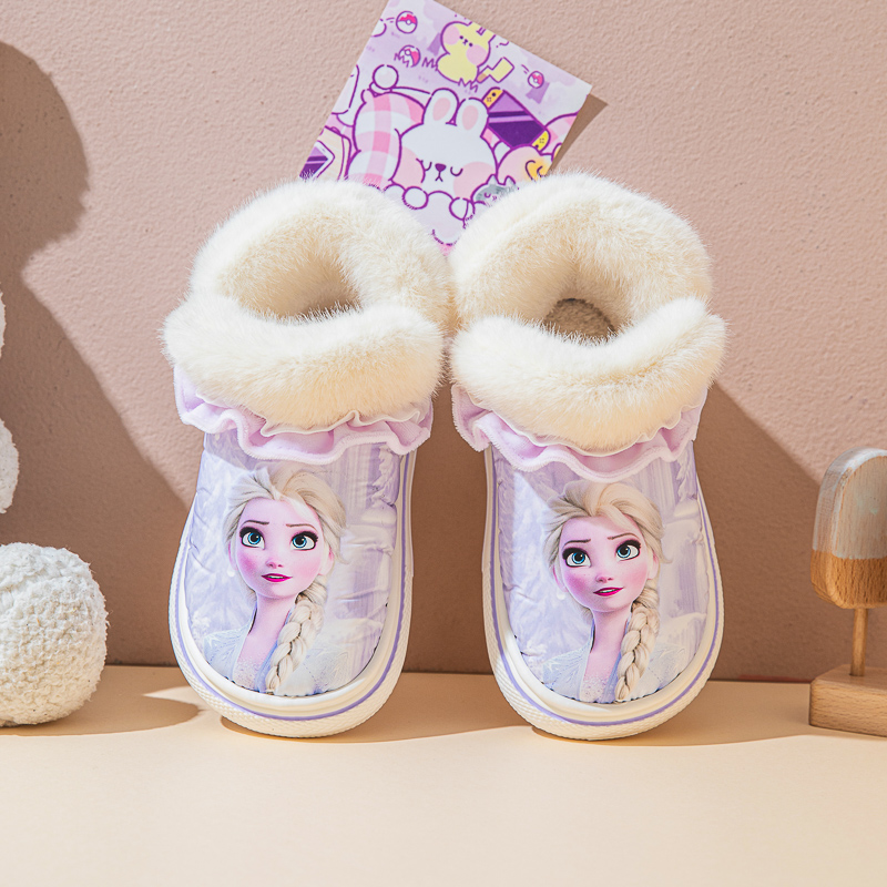 秋冬季 儿童棉拖鞋 女童包跟毛绒保暖室内厚底防滑艾莎公主小孩拖鞋