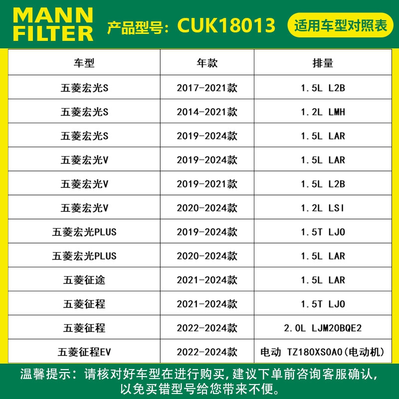 曼牌滤清器CUK18013活性炭空调滤芯格适用五菱宏光S PLUS征程