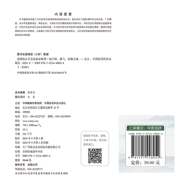 杨宇峰 滕飞 徐娜 正版 社 消渴病古代名医临证辑要 中国医药科技出版 9787521448054 全新