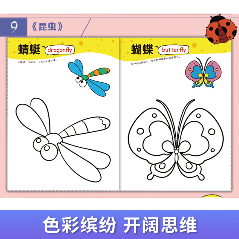 幼儿园绘画入门画本 6岁儿童新手入门涂色涂鸦简笔画临摹提高运笔色彩搭配能力 小果树宝贝爱涂色10册