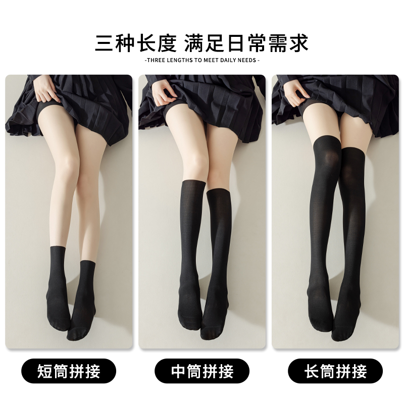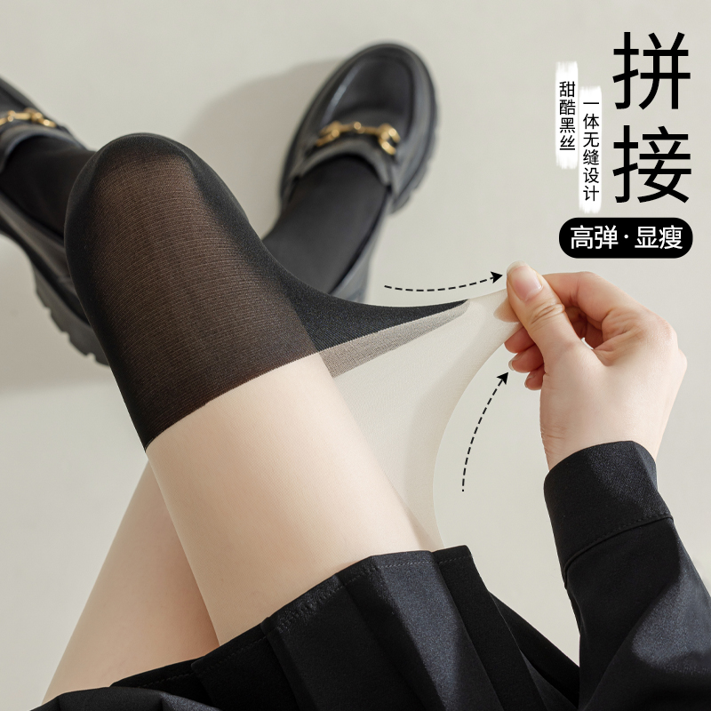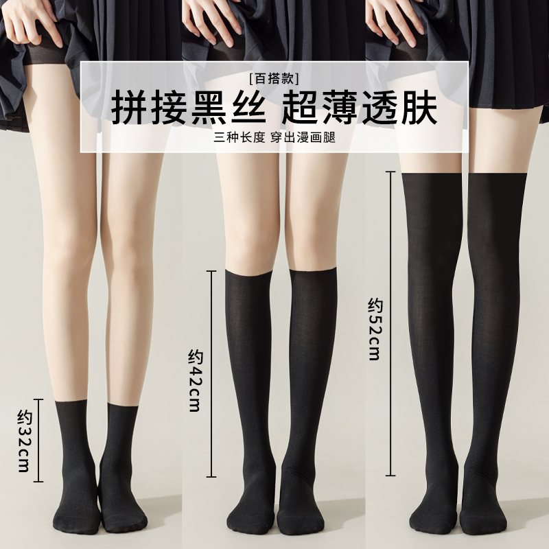 婷美拼接丝袜女防勾丝春秋假小腿光腿神器JK连体裤 袜 冬假过膝连裤