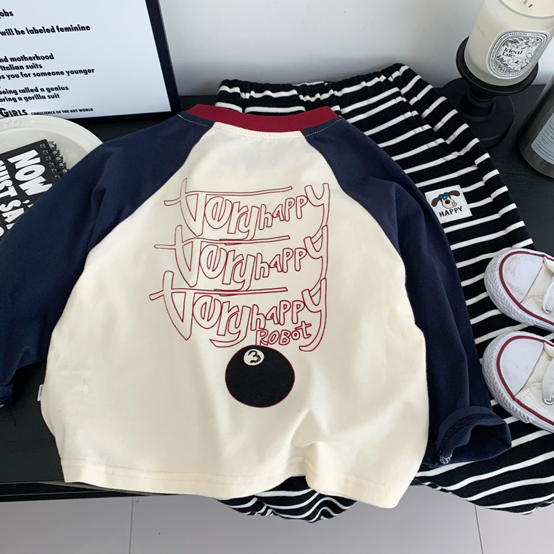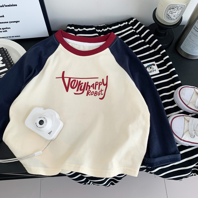 上衣 5中童柔软长袖 儿童纯棉T恤春秋男童圆领洋气字母插肩袖 打底衫